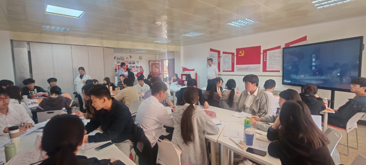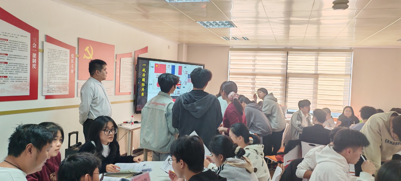 活动现场,同学们化身成为当年谈判桌前的各国代表。大家迅速进入角色,围绕“山东权益归属”这一牵动亿万国人心弦的核心议题,展开了唇枪舌剑的激烈交锋。一方是手握强权、利益至上的列强,一方是虽处弱势却据理力争的中国代表,“会场”之上,观点碰撞,气氛紧张而凝重。同学们在言辞交锋与策略权衡中,生动再现了当年谈判桌上的波诡云谲与那份令人窒息的沉重氛围。