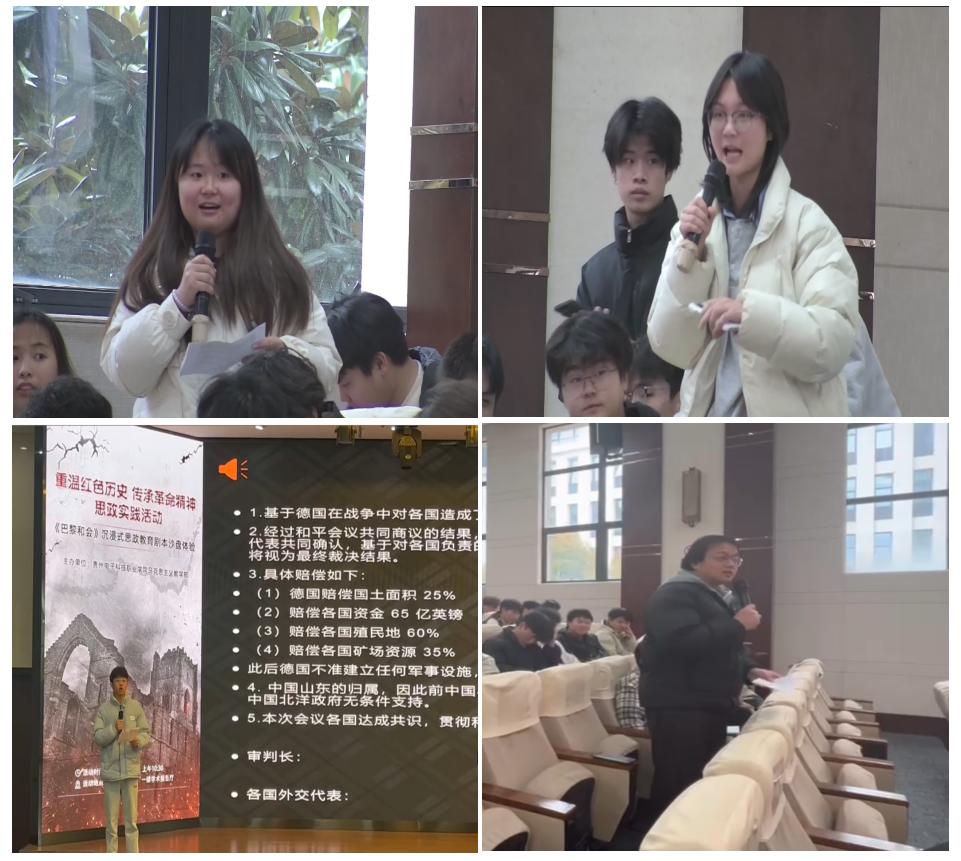 2025年4月2日上午,马克思主义教学部在学院正德楼一楼学术报告厅开展“重温红色历史 传承革命精神——《巴黎和会》红色情景剧本沙盘体验”主题活动,思政课教师、青马社团成员和学生共计240余人参加。此次主题活动旨在通过新的教学形式,增强思政教育吸引力,提升师生团队协作能力与历史责任感,促进“思政课程”与“实践育人”融合,以及提高学生综合素质、增强学生爱国情怀。