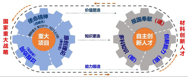 图1 “重大项目牵引,育能育魂融合”材料类研究生培养模式