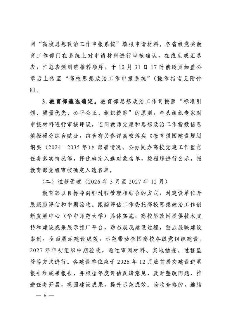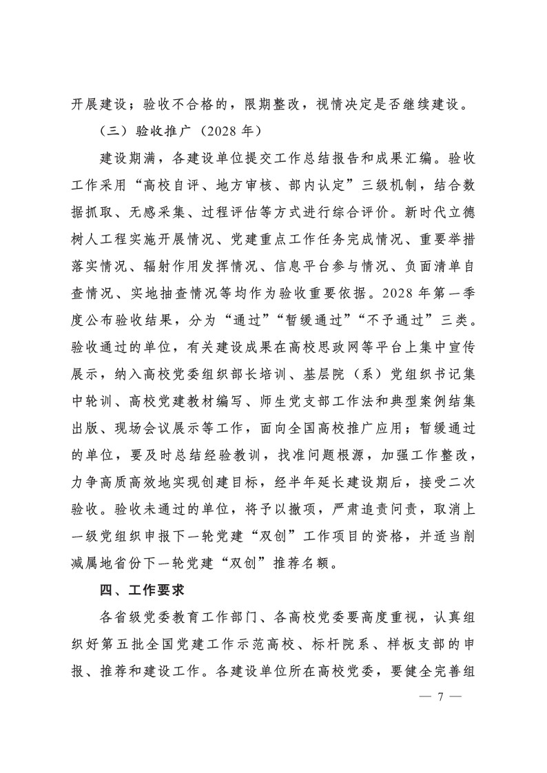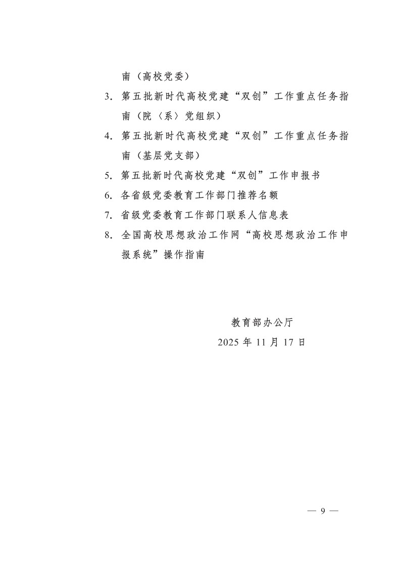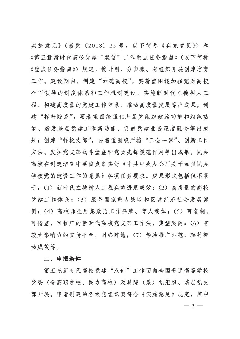 教育部办公厅关于开展第五批新时代高校党建示范创建和质量创优工作的通知