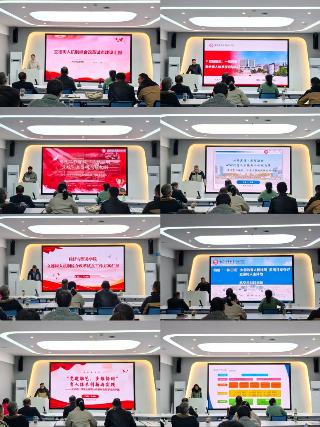 会上,各二级学院依次汇报了立德树人机制综合改革试点工作推进情况。汇报聚焦改革目标,围绕育人体系构建、特色举措实施、阶段成效总结及下一步计划等方面展开,全面展现了各试点院系在探索立德树人新模式、新路径上的实践成果。与会人员围绕试点工作中的重点难点、经验做法及推广应用等内容开展深入交流研讨。