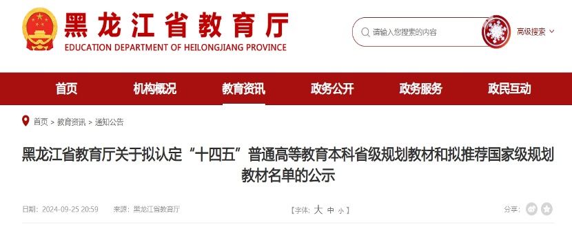近日,黑龙江省教育厅公布认定“十四五”普通高等教育本科省级规划教材和推荐国家级规划教材的名单,我校5部教材被认定为“十四五”普通高等教育本科省级规划教材。