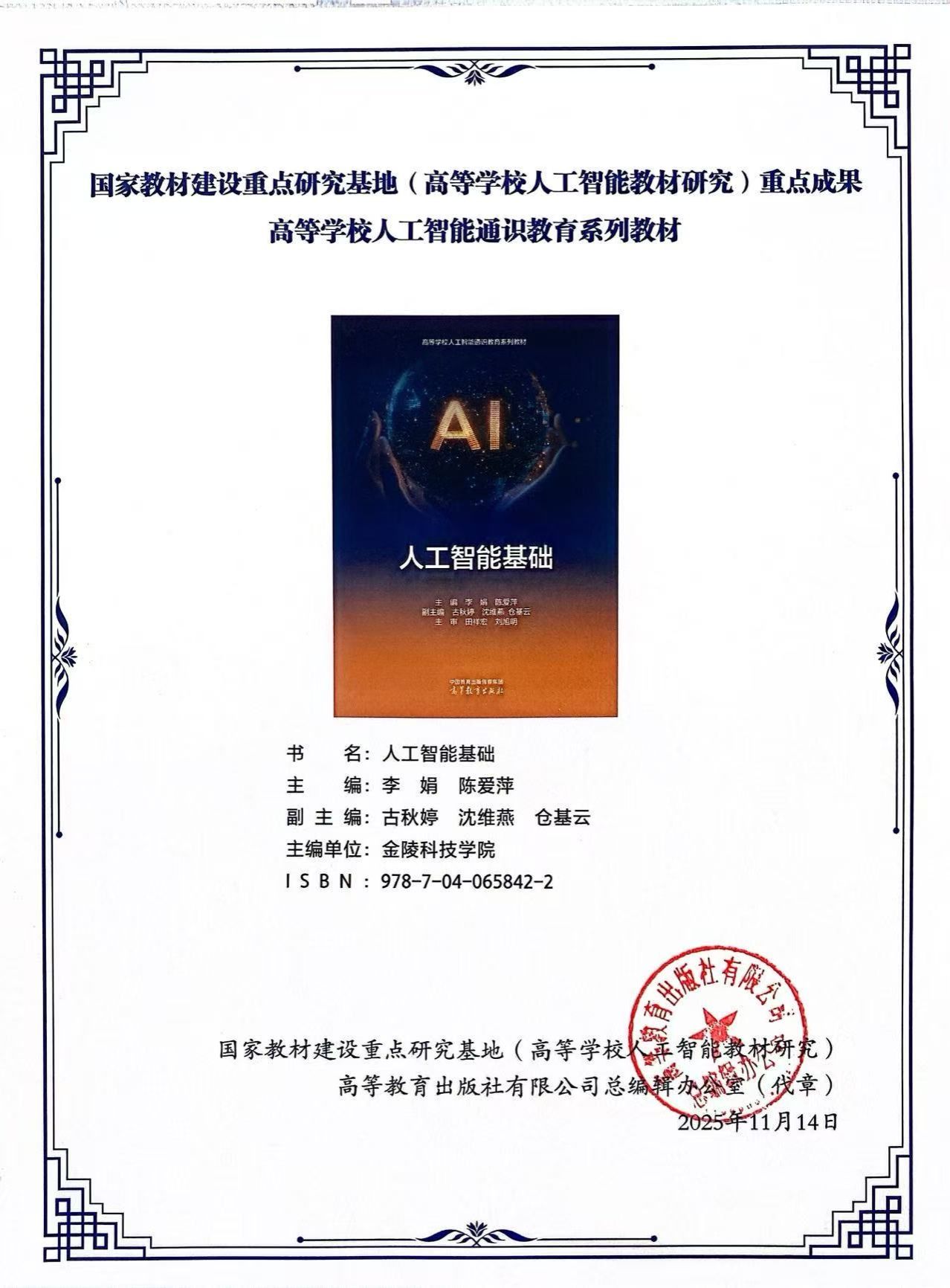 《人工智能基础》教材深度融合南京“4266”产业体系中关于人工智能、软件和信息服务等产业元素,将南京在智能制造、智慧城市等领域的应用场景转化为生动的教学案例,致力于培养理论基础扎实、工程实践能力强、适应地方产业发展的应用型人工智能人才。此次教材获评国家级重点成果,正是我校在人工智能教育教学领域坚持特色发展、深化产教融合所取得的标志性进展。