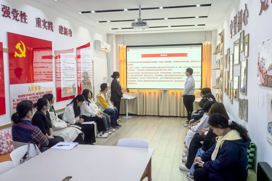 党员李庆芳领学了《习近平谈治国理政》(第五卷)的相关篇章。她从外语与文法的专业视角出发,倡导将理论学习与专业实践紧密结合,号召青年党员积极参与文体活动和社会实践,充分发挥先锋模范作用,展现新时代青年蓬勃向上的朝气和昂扬向上的精神风貌。