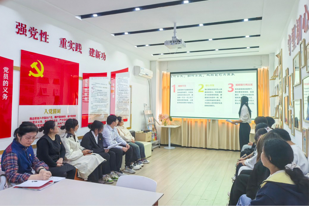 活动在庄严的国歌声中拉开帷幕,学生党员谢雨晗带领全体党员重温入党誓词。铿锵有力的誓词不仅增强了组织的凝聚力,更激发了党员们敢于担当、砥砺奋进的精神力量,推动他们将誓言内化于心、外化于行。