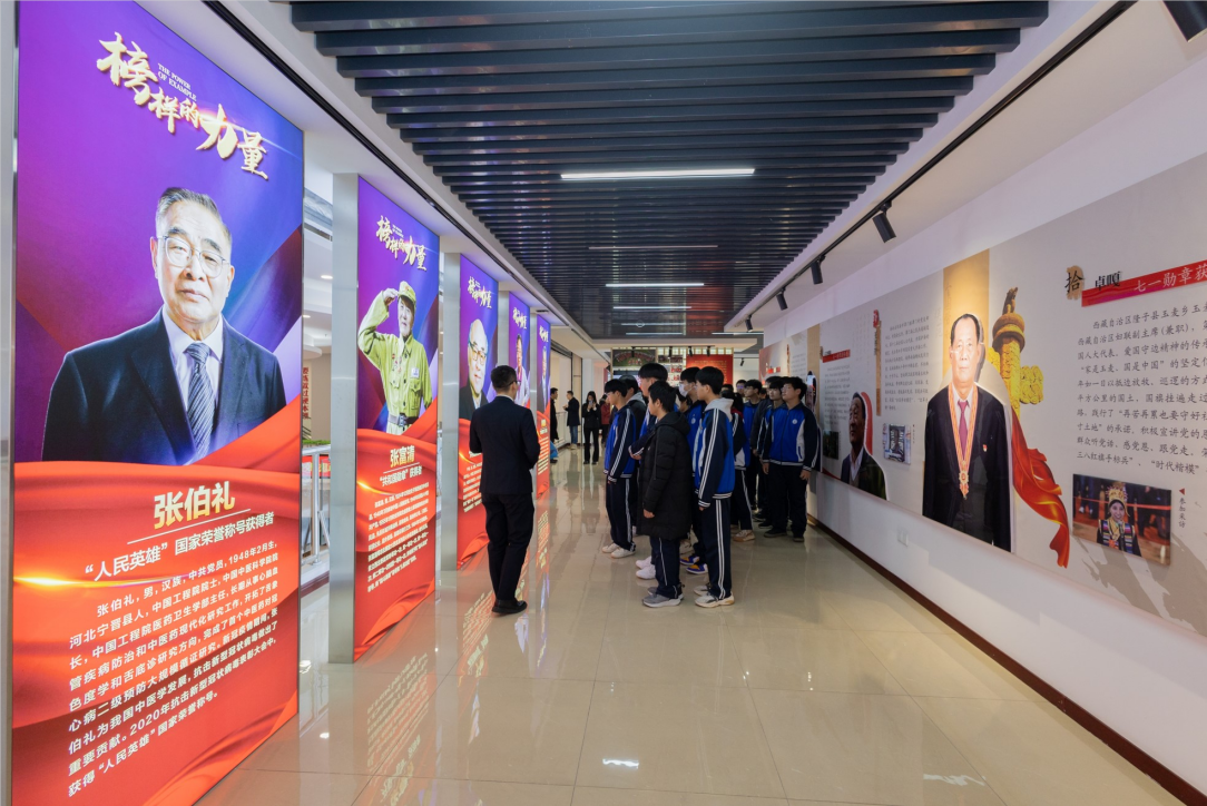 学校注重提高新时代党建引领育人实效,通过校园文化熏陶、朋辈示范引领等途径,引导学生在潜移默化中受教育。学校理事长贾秀芳亲力亲为,带头宣讲爱党爱国、爱家爱校的家国情怀;党的二十大代表苗秀深耕生产一线、攻坚克难的工匠精神鼓舞着职业教育的莘莘学子;全国先进工作者冷菊贞不忘初心、不断创新的驻村经历让同学们深受触动;在“猫耳洞”坚守77天的胡国桥大校青春从戎、为国战斗的经历让同学们热血沸腾;贾雪阳将军的军旅峥嵘岁月,激发了同学们的责任和担当。“独腿英雄”全国自强模范刘树洪、9次战功荣立者战斗英雄毛羽亮、战斗英雄陈洪远等英模劳模与思政教师们座谈,为同学们授课。左力老师,举办百场忠诚教育思政大课,受众十万余名。学校充分发挥党组织作用,连续3年开展“让学生爱上学习”教育教学分享会等活动,形成专家讲、老师讲、学生讲、人人讲的弘扬正能量校园氛围,以英雄气概涵养时代新人,用课程思政的方式让更多的师生得到红色精神的洗礼。