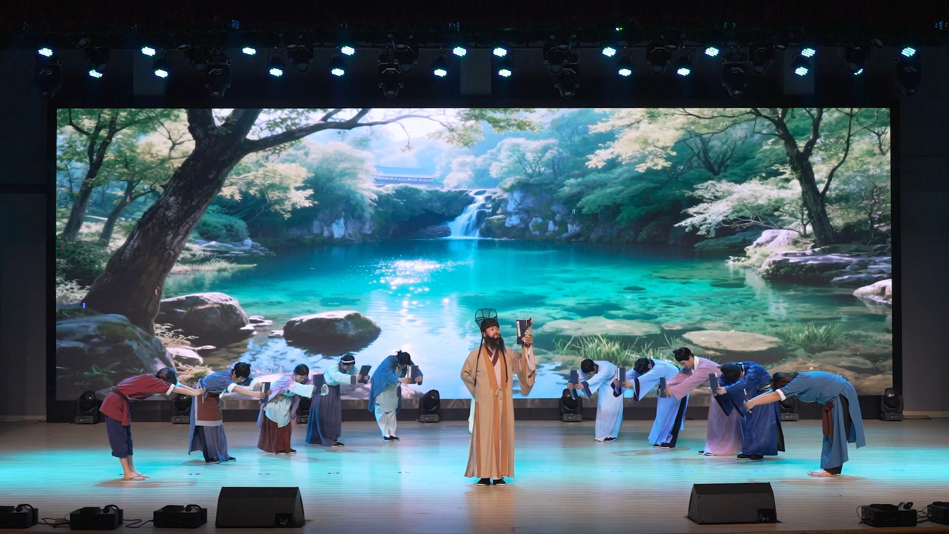 《龙潭讲学》以艺术手法生动再现明代王阳明在滁州督马政时开坛讲学的历史,借细腻情节与饱满人物,具象化呈现“知行合一”思想在滁州的萌芽传播,让观众在感受艺术魅力中体悟中华优秀传统文化底蕴。该项目2024年10月启动,团队成员深挖地方历史、走访专家、查阅古籍筑牢史实基础,2025年春节前后打磨脚本、上半年师生精研排练、6-7月拍摄、制作参赛视频,最终凭借出色的作品质量在众多参赛项目中脱颖而出,成功摘得一等奖。