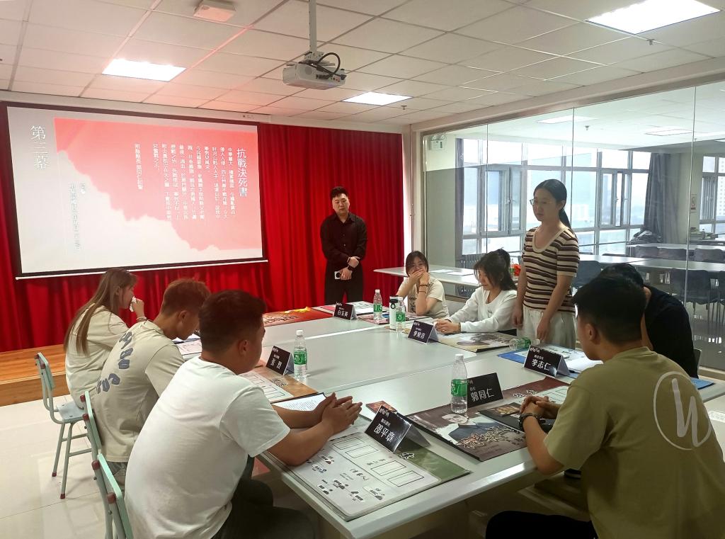 红色情景剧本沙盘以《抗日保卫战》红色剧本为依托,以其沉浸式情景剧体验,将师生置于那个硝烟弥漫的年代,以第一视角感受历史上统一战线各界人士参与救亡图存、民族解放、国家统一的艰难历程。他们当中,有积极建立抗日民族统一战线的地下共产党员,有主张守土抗战的县长、团长,有对抗战的态度存在分歧的亲姐妹,还有在“战”与“不战”间摇摆的商会会长。国家危亡之际,大家在苦苦挣扎、艰难追寻中,增强了民族意识。当大家共同在《抗战决死书》上按下手印的那一刻,现场充满豪情壮志。代入“先烈”的沉浸式体验,让参与活动的师生情不自禁落泪,受到深深的触动。