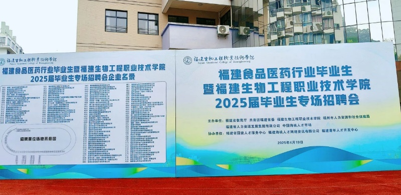 邀请企业共同举办就业实习专场招聘会,为学生提供就业和实习岗位。2024年召开“扬帆追梦,创享未来” 就业实习双选会,37家企业提供了近700个岗位。2025年召开福建食品医药行业毕业生暨福建生物工程职业技术学院2025届毕业生专场招聘会,38家企业提供了近300个岗位。2024届毕业生共有671人,毕业去向落实率达到100%。