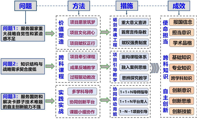 卡脖子技术重大项目牵引,构建多学科导师团队、协同育人平台和课题协作制度,“团队-平台-课题”联动,提升学生创新能力。