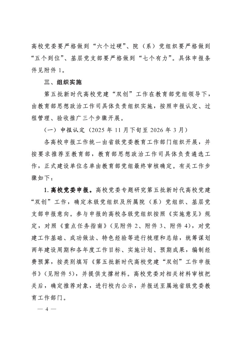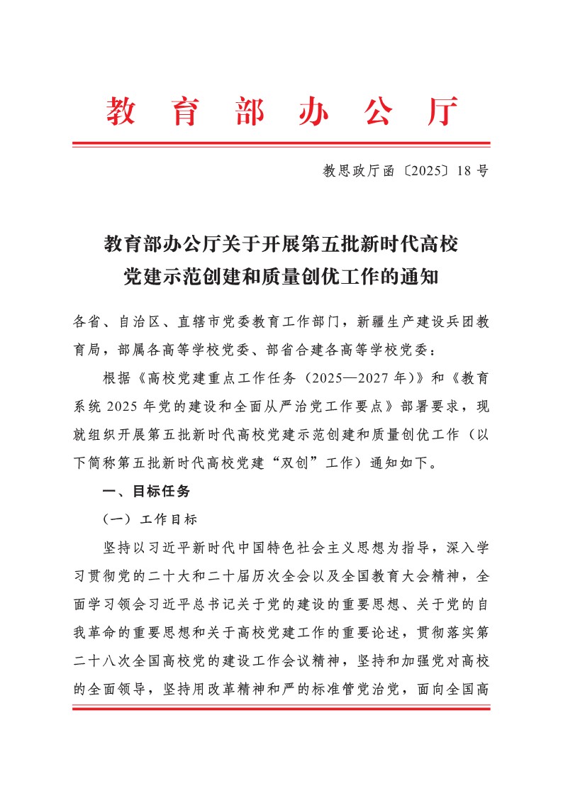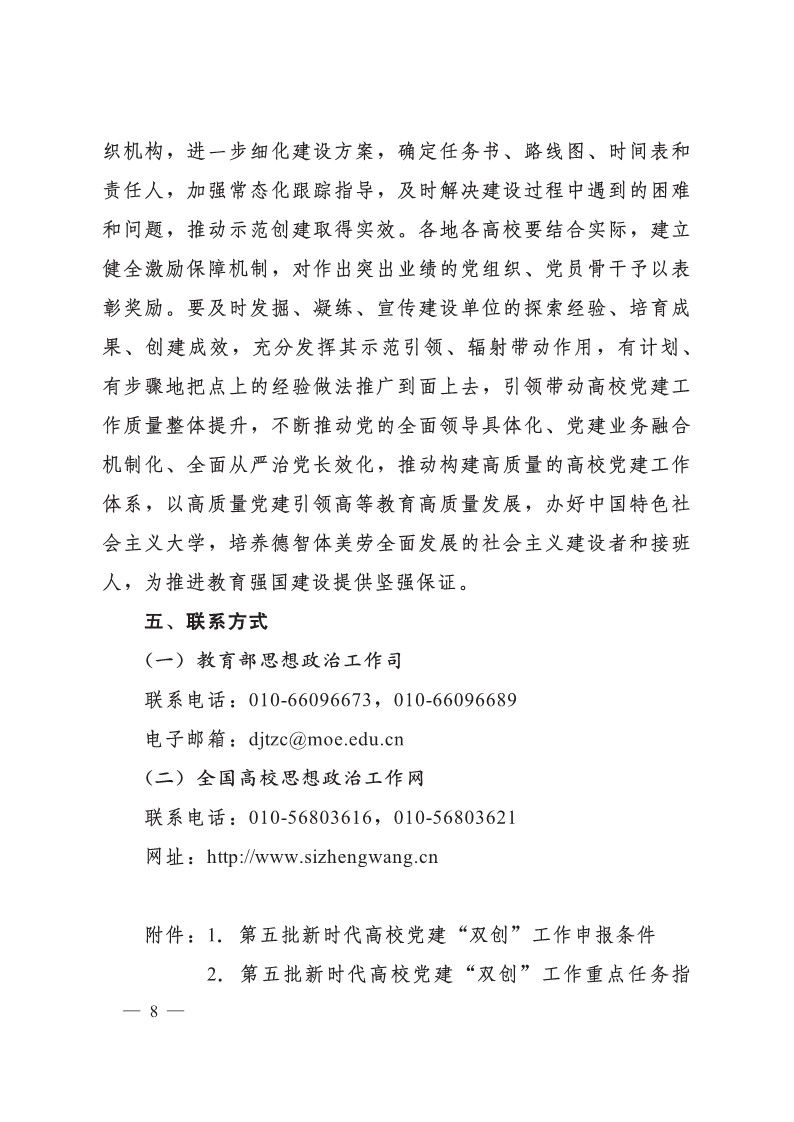 教育部办公厅关于开展第五批新时代高校党建示范创建和质量创优工作的通知