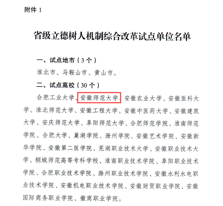 关键词:安徽师范大学,全省,立德树人,机制综合改革,试点单位