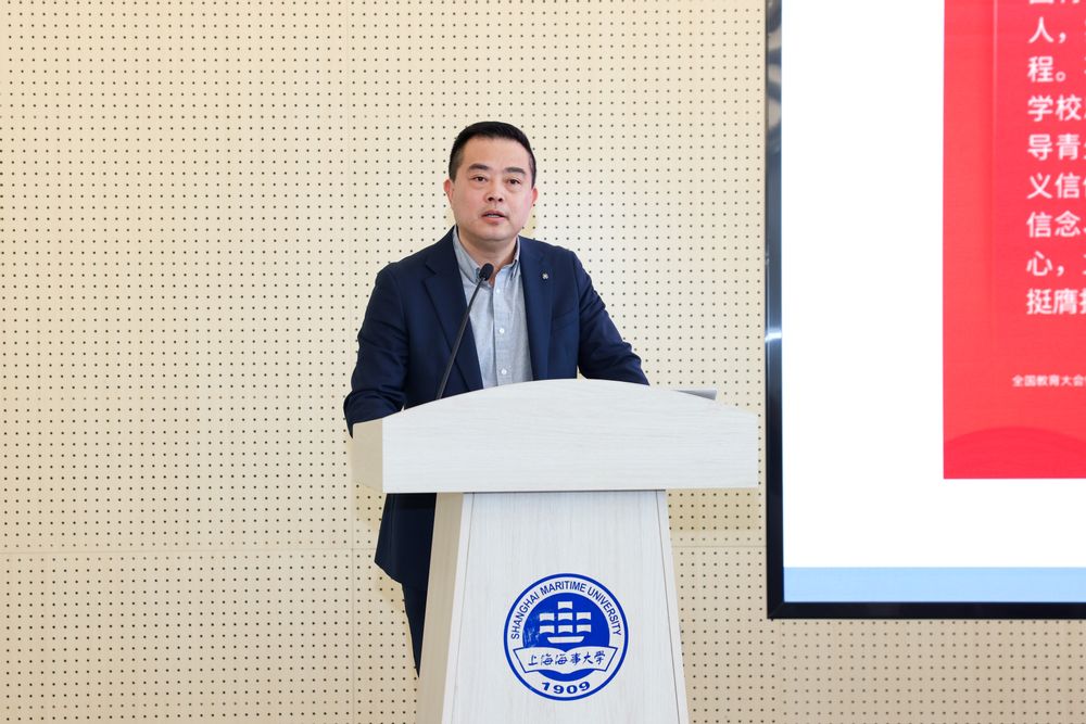 交流发言环节,教务处处长黄顺泉、马克思主义学院院长张峰、校团委书记赵大为、学生处处长顾卫忠、党委教师工作部部长姚裕丰、商船学院党委书记秦立卿分别结合部门、学院职责与工作实际开展交流。