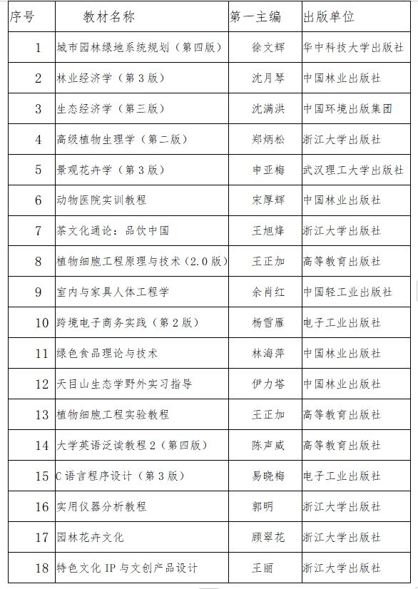 近日,浙江省教育厅公布了浙江省“十四五”普通高等教育本科规划教材目录。我校《城市园林绿地系统规划(第四版)》等18部教材入选浙江省“十四五”普通高等教育本科规划教材,其中《城市园林绿地系统规划(第四版)》等5部教材被推荐申报“十四五”普通高等教育本科国家级规划教材。