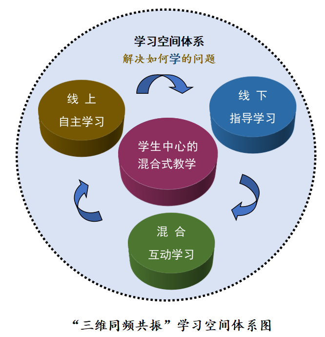 1.构建了以学生为中心的线上自主学习—混合互动学习—线下指导学习的“三维同频共振”全天候学习空间体系