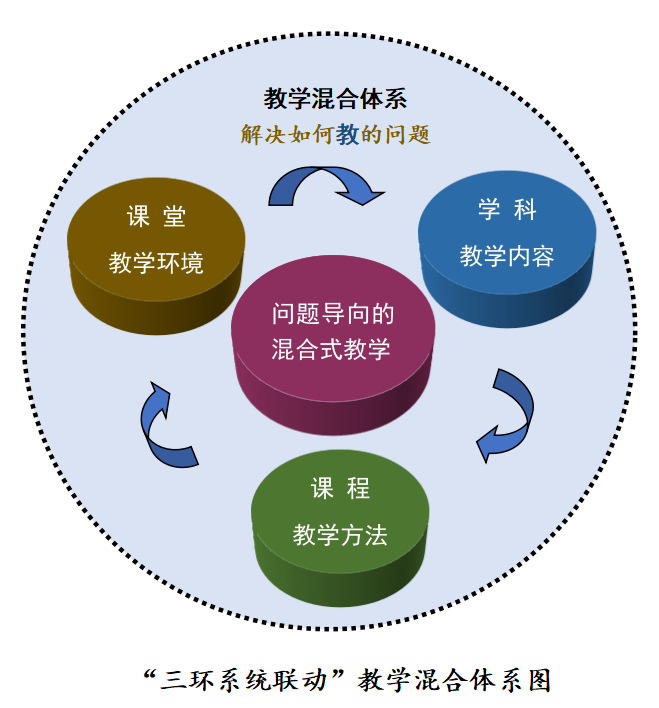 以问题为导向,以专题—问题链为主题,以教师主导和学生主体相结合,构建学科教学内容—课程教学方法—课堂教学环境“三环系统联动”的全开放教学混合体系,从根本上破解教与学互动不够的困境,实现内容、方法、环境之间的融合统一。