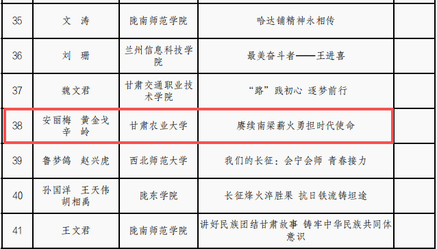 本次获奖成果涵盖三大类别,其中优秀论文2篇、优秀典型案例2篇、优秀“大思政课”公开课2项。《马克思“真正的”共同体思想视域下农业院校“大思政课”育人共同体的建构逻辑》和《高校美育与思想政治教育融合协同新探——以甘肃农业大学为例》荣获优秀论文奖;《农科特色引领 实践铸魂育人——甘肃农业大学“小我融入大我,青春献给祖国”主题社会实践思政教育典型案例》和《甘肃农业大学“行走的课程”赋能“大思政课”的探索与实践——以“漠脉星图”生态调研团民勤社会实践为例》荣获优秀典型案例奖;《在红星闪耀处,回答》和《赓续南梁薪火勇担时代使命》荣获优秀“大思政课”公开课奖。