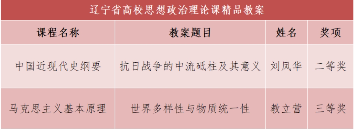 思想政治理论课作为思政教育的主渠道,此次同样斩获佳绩,《中国近现代史纲要》《马克思主义基本原理》2门思想政治理论课教案分别荣获2025年度辽宁省高校思想政治理论课精品教案二等奖、三等奖。这些教案的成功,得益于学校对思政课改革的持续推进,通过引入红色资源、对接地方实践,让思政课从“理论讲授”变为“情感共鸣”。