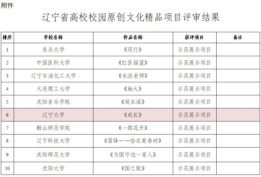日前,辽宁省教育厅公布《关于辽宁省高校校园原创文化精品项目评审结果的公示》,我校申报的原创廉洁教育剧《成长》入选辽宁省高校原创文化精品项目榜单,获评“示范展示项目”。
